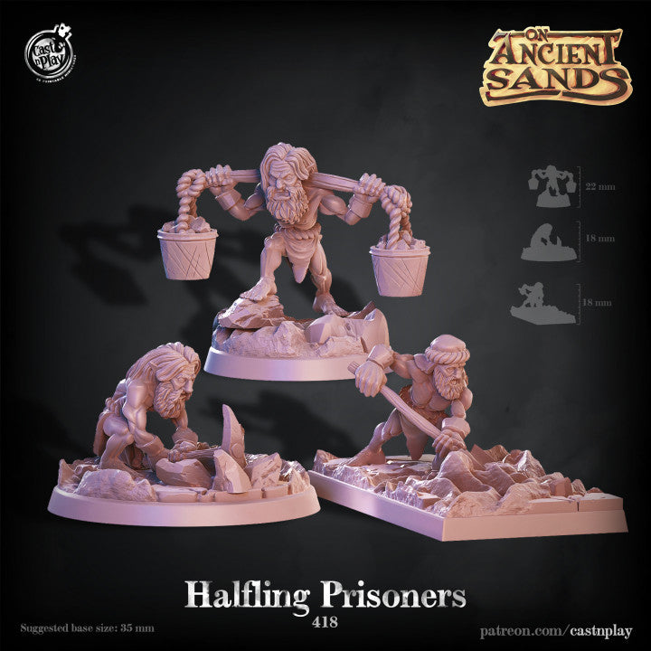 These halfling prisoners designed by Cast n Play have been put to work in the mines. worked all day till they drop these poor men need someone to rescue them from their evil captors.