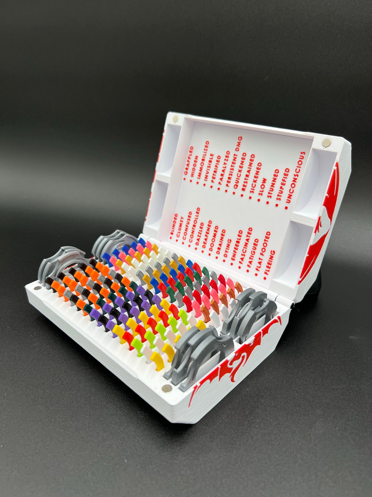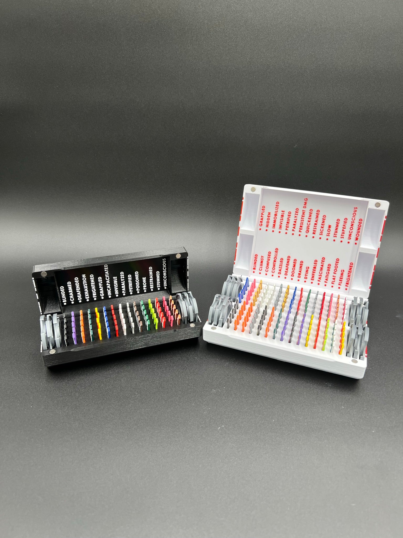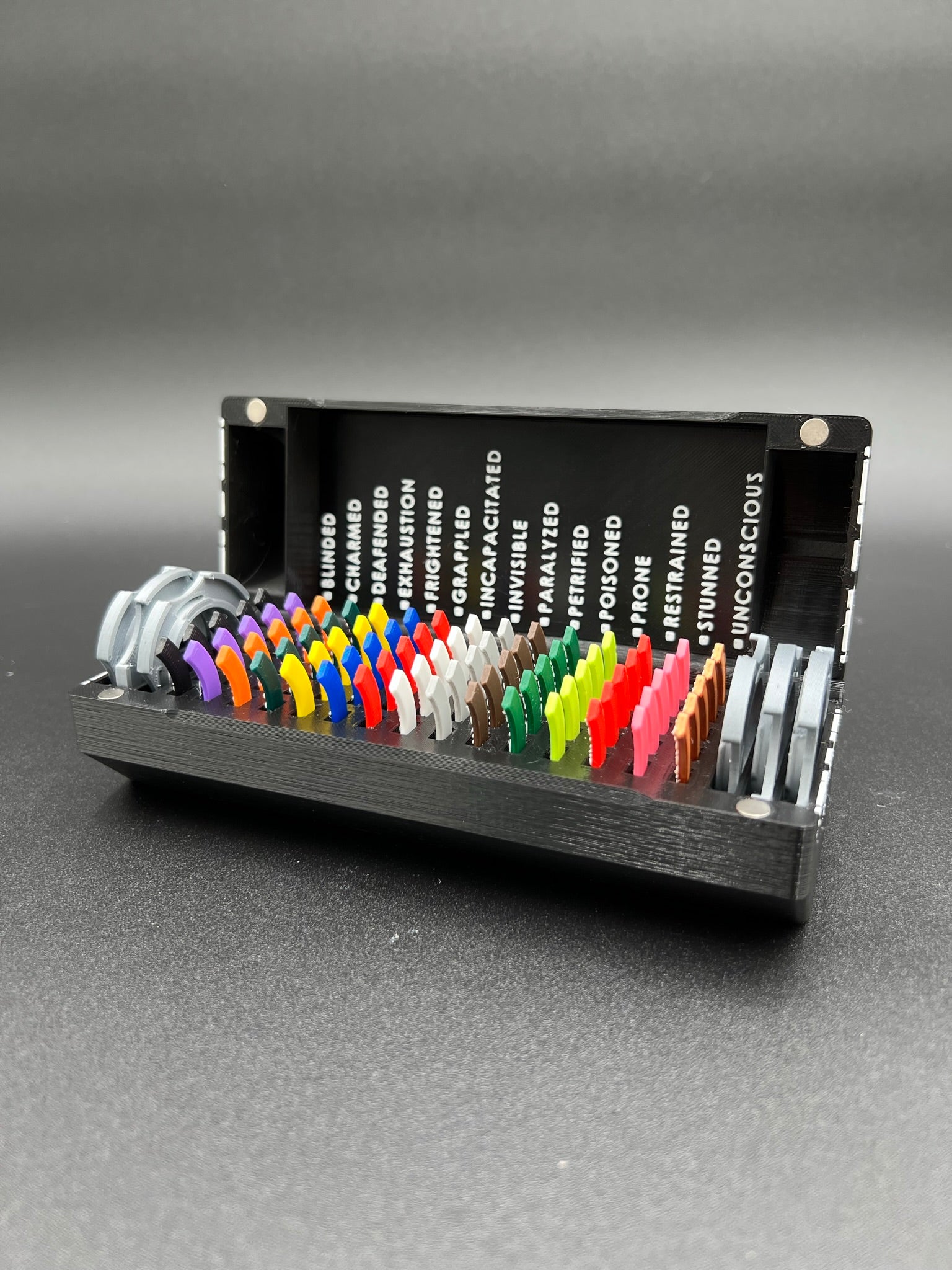 Elevate your tabletop RPG experience with Snappy Condition Rings. Our innovative set includes 3D printed rings for D&D and Pathfinder, all the important conditions, and a magnetic case for easy organization. Stay organized and immerse yourself in the game with Snappy Condition Rings.